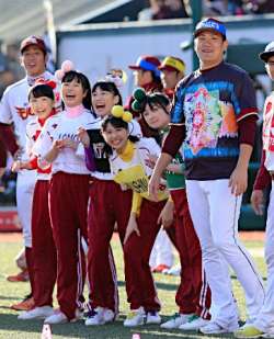 【野球】ももいろクローバーZが楽天ファン感に登場 “師匠”マー君に花束贈呈
